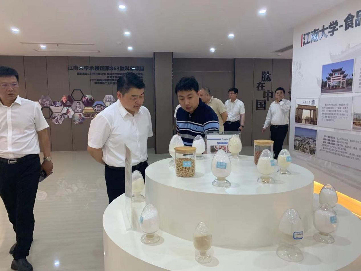 6月13日,海安市人民政府副市長曹鋮一行來到我司參觀視察??偨?jīng)理韓昕、副總經(jīng)理李鵬飛進(jìn)行接待。 在副總經(jīng)理李鵬飛的帶領(lǐng)下,曹副市長一行參觀了俊啟生物肽科技展廳。李副總從俊啟生物的發(fā)展里程、公司榮譽(yù)、社會責(zé)任、肽的功能、生產(chǎn)工藝、產(chǎn)品應(yīng)用等方面多角度向曹副市長進(jìn)行了詳細(xì)介紹。參觀過程中曹副市長對肽提取的工藝流程以及產(chǎn)品類型等方面都表現(xiàn)出濃厚的興趣,并多次就細(xì)節(jié)問題進(jìn)行詢問溝通,李副總一一作了解答。 最后,曹副市長對我司產(chǎn)品的技術(shù)創(chuàng)新成果表示了高度認(rèn)可以及肯定,同時(shí)表示后續(xù)會持續(xù)關(guān)注俊啟生物的發(fā)展。